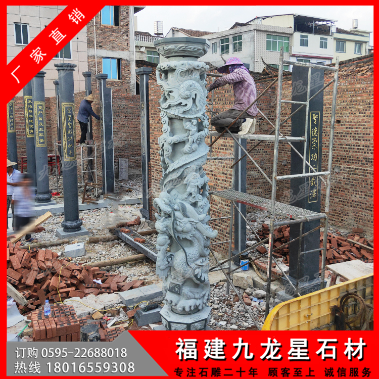 - 2022-08-19 羅源青石雕龍柱 寺院盤(pán)龍柱雕刻