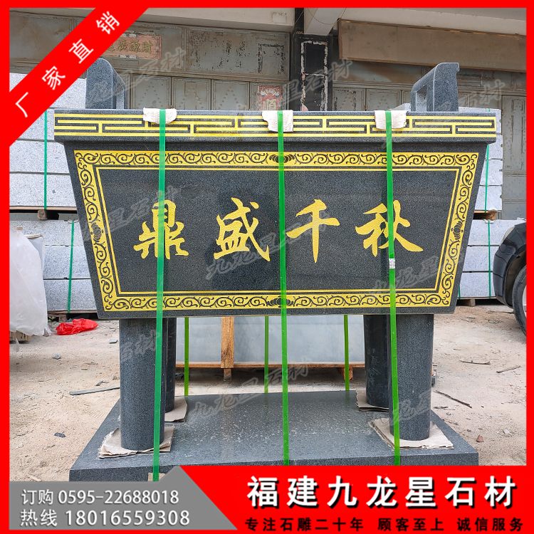 石雕香爐的制作石材通常是優(yōu)質(zhì)顏色偏深的花崗巖石料和青石石料,青石本身顏色呈現(xiàn)青色,較為古樸,青石石雕香爐突顯了整個香爐的莊重氛圍,為佛教圣地增添了幾分威嚴。石雕香爐的外形分為圓口、方形口、長方形口,圓口香爐一般是三足兩耳,方形香爐一般是四足兩耳,長方形香爐一般也是四足兩耳,還有少許兩層石雕香爐。