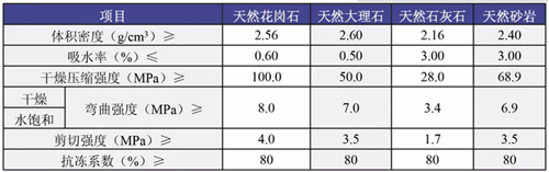 表1:干掛石材的物理性能主要指標(biāo)及參數(shù)