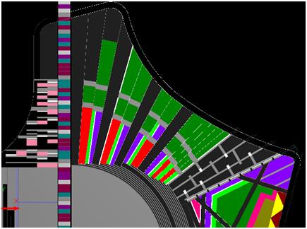 3、繪圖時,利用導入的CAD線條元素并結(jié)合Glodon軟件自帶的延伸、鏡像、偏移和修剪等工具,各種面形構件之間用虛墻分隔。