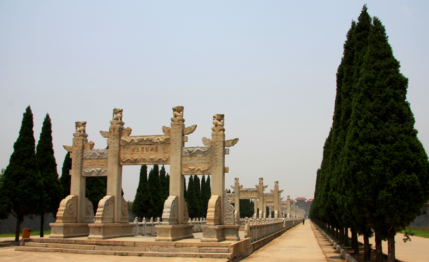 南海禪寺山門牌子樓長(zhǎng)50米,高31米。山門內(nèi)長(zhǎng)500米,寬20米的甬道上,自北向南依次按12姻緣、12生肖、12菩薩建筑的 12座花崗巖牌坊,風(fēng)格獨(dú)特,巍巍壯觀。
