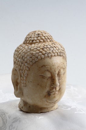 佛造像是佛教的載體,通過對佛造像年代、工藝、造型及風(fēng)格的研究,有助于認(rèn)識(shí)和了解古代雕刻藝術(shù)、文化史,古人的審美情趣以及古代的政治、經(jīng)濟(jì)和科技發(fā)展水平??v觀佛造像制作材料,有木制、泥塑制、金屬制、牙骨制、陶瓷制和石制。其中以石刻雕制的難度最大,因?yàn)樗婕笆系倪x擇、開采、運(yùn)輸,體大量重,雕刻打磨實(shí)屬不易。唐代石刻佛造像是把人與精神、現(xiàn)實(shí)與理想完美地結(jié)合在一起的最佳表現(xiàn)形式。那么就請大家一同欣賞這尊唐代漢白玉佛首的神韻和藝術(shù)感染力以及由此帶給我們大家的宗教、歷史、文化等方面的信息吧。