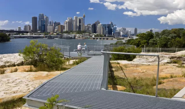 場(chǎng)地作為油庫(kù)使用長(zhǎng)達(dá)60多年,已經(jīng)不可避免地受到污染.BP公司的這塊場(chǎng)地一度容納了辦公區(qū)和31座儲(chǔ)油罐,巨大的弧形混凝土墻用以防止原油泄露污染海港。新的設(shè)計(jì)保留了場(chǎng)地的工業(yè)遺跡和海港特征,表現(xiàn)為連續(xù)的開放空間和大片的濕地,壯觀的觀景平臺(tái)懸踞在高高的半圓形砂巖懸切面上,這里曾經(jīng)矗立著巨大的儲(chǔ)油罐?;炷梁徒饘匐A梯將各個(gè)空間連接起來,方便游人欣賞岸邊的親水性野生生態(tài)系統(tǒng)。