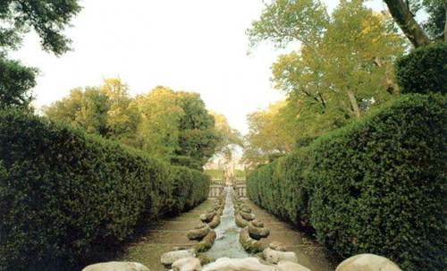 噴泉:蒙塔爾托主教入主別墅時期,他按照當年維尼奧拉的整體設計,繼續(xù)建造花園的中央噴泉--意大利風格主義雕塑家詹博洛尼亞(1529-1608)設計建造的"摩爾噴泉":4個石欄圍繞的水池,石欄上矗立著石雕花瓶,4個水池中央便是一組高聳的年輕運動員的輝煌雕塑,他們高高舉起象征著蒙塔爾托主教家族姓氏的"阿爾托山"。從遠處看去,這些有力的塑像十分宏大,黑黝黝地閃耀,以至于人們會認為它們是青銅,可是難以置信的是,它們是最好的、最堅硬的石灰華在陽光與水的作用下生成的一種堅硬如鐵的物質(zhì)。后來意大利新古典主義雕塑大師卡諾瓦來到這里時,大為驚訝,他一邊拿起錘子輕輕敲打著它,一邊發(fā)出如此的感嘆:"它將比大理石更長久"。