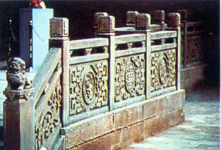 莊園大量的石雕,還是砂石作品。其石材多取于附近山中,質(zhì)地有白、綠、紅、青多種,主要用于橋、廳、臺、廊的護(hù)欄和柱體,半亭花墻、影壁和牌坊,刀法較青石作品粗獷、雄渾,畫面疏朗典雅、疏密得當(dāng)、虛實(shí)和諧、古樸堅(jiān)實(shí),顯得特別有氣魄。杏壇、街心牌坊、祠堂獻(xiàn)廳圍欄、養(yǎng)和堂階欄、半亭、三星影壁和莊園西門魚躍龍門巨幅石額,就是砂石雕刻的代表作。