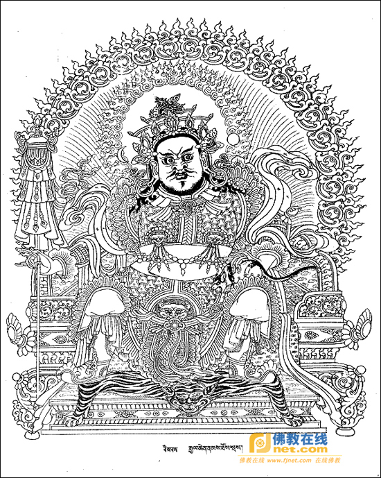 北方多聞天王毗沙門(mén),持寶傘,住北俱盧洲,中國(guó)神話中托塔李天王李靖就是從多聞天王演化而來(lái)。