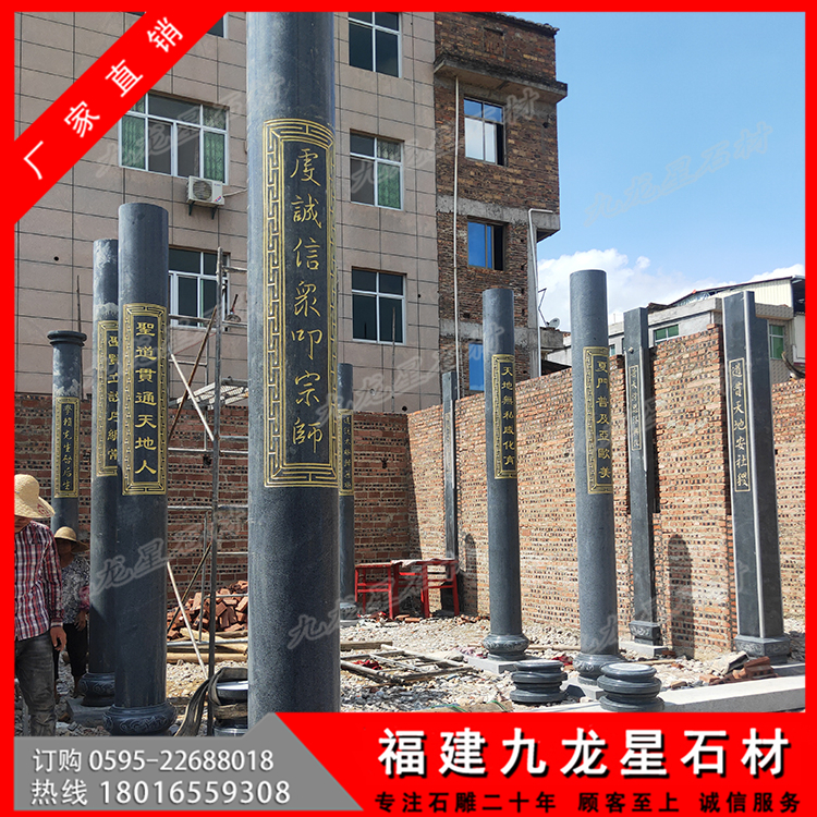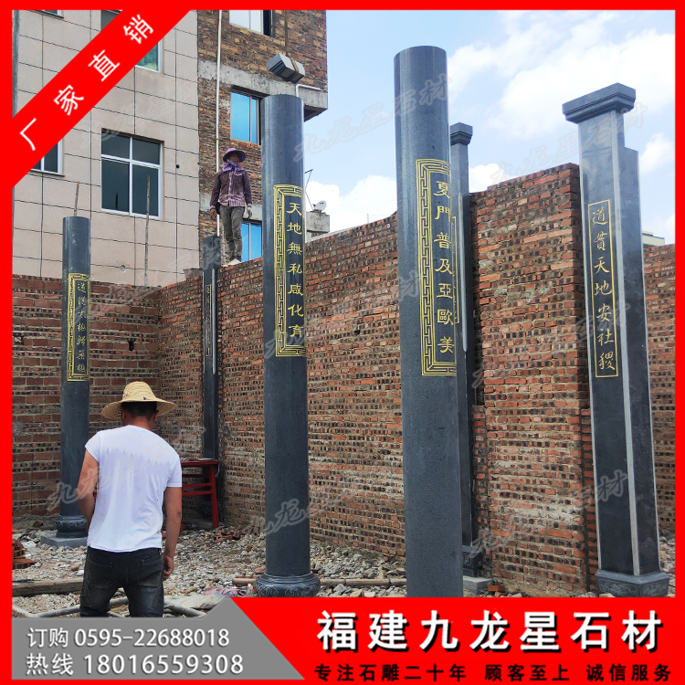 莆田普玉書(shū)院芝麻黑石材圓柱 青石雕龍柱