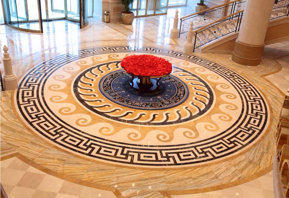 大理石拼花石材拼花,其實(shí)可以看做是馬賽克工藝的一種發(fā)展和延伸,是馬賽克工藝和新的加工工藝和技術(shù)相結(jié)合的而衍生出的新的石材產(chǎn)品。像早期的石材拼花,主要是石材板材類產(chǎn)品的拼組,這可以看成是放大版的石材馬賽克,而后期由于水刀技術(shù)的應(yīng)用和加工精度的提升,石材拼花把馬賽克的鑲嵌工藝發(fā)揮到了極至,形成了自己獨(dú)特的風(fēng)格。不過(guò)在國(guó)外石材拼花還是屬于石材馬賽克的范疇的。