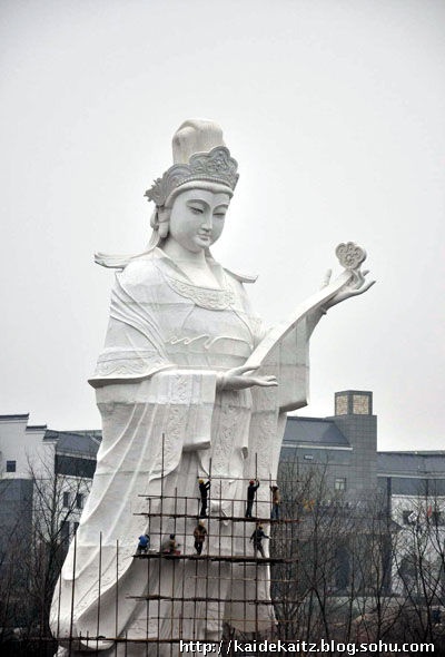 據(jù)說,這神像高37米,北京漢白玉雕刻。神像面容慈祥而和藹。
