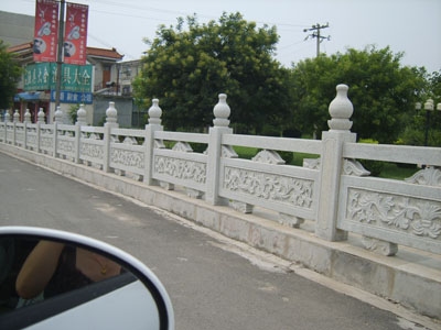 2﹑欄板式欄桿,只有望柱及柱間欄板,而不用尋杖、寶瓶等物,石雕欄板有的光素無華,有的石雕麒麟、浮雕字流水、卷草紋、梅花、山水、石雕貔貅等神話故事.