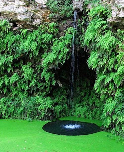 莊園景觀處處充滿特色,而水景則是園中最為突出的景觀。園中水景動靜結(jié)合,有規(guī)模宏大的大型噴泉雕塑,也有細細流水的流水階梯和小水渠。由第四層臺地洞府作為全園的水源,連接各個水景,再以底層的方形水池噴泉的形式作為高潮而結(jié)束。一些如流水階梯、底層水池噴泉和洞府等的美麗景觀不用多說,想說的是二層臺地上的長條形水渠。這水渠位于中軸線上,長條形大理石中間開縫裝有平靜的流水,這樣的設計讓我聯(lián)想到廣東的祠堂中也有類似的盛水物,下雨后積水,配上青苔和祠堂的柏樹,總給人幽靜、舒適感,在莊園這里也起到相同作用。樹蔭底下一切顯得和諧安靜,碰巧可能還會見到動物在這里喝水,這樣也剛好給主人修心看書的環(huán)境。水渠同時也起到引導和指向作用,突出了巖壁的半圓噴泉。維尼奧拉對丘陵地帶變化豐富的地形進行了靈活巧妙的利用,在三層平臺的圓形噴泉后,用一條華麗的鏈式水系穿越綠色坡地,使得漸行漸高的園林中軸終點落在了整個莊園的至高點上,并在此修筑亭臺方便從這兒俯瞰莊園全景。在這個新奇、精美、不斷變化的展現(xiàn)中,理水的高度技巧和精美的雕塑藝術完美的體現(xiàn)出巴洛克美感。