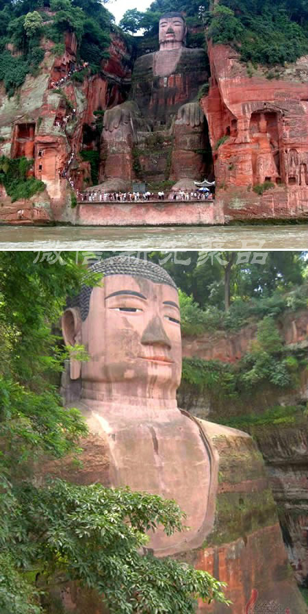 樂山大佛,地處中國四川省樂山市,岷江、青衣江和大渡河三江匯流處,建于唐朝時(shí)期。大佛雕像通高71米(約23000英尺),游客們就像小矮人一樣圍繞其四周觀看。其面向峨眉山矗立在三江的‘聚會(huì)場所’。過去的二十年,大佛飽受自然風(fēng)雨和污染的侵蝕。幸運(yùn)的是,在2008年的四川大地震中大佛并沒受到損壞。