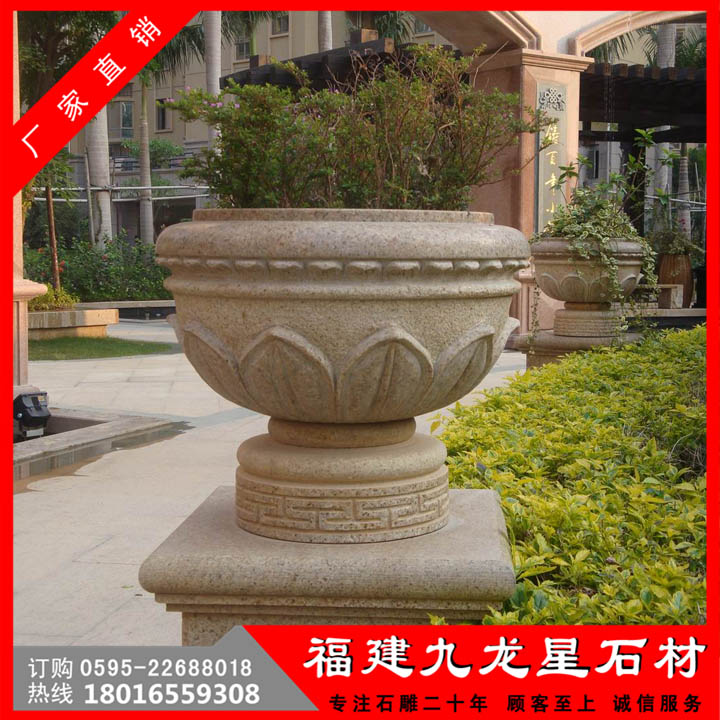 園林花缽石雕文化在中國(guó)的歷史上,有著很輝煌的歷史,它的美一直傳承到了現(xiàn)在,不僅是視覺(jué)上的享受,也是一種文化的熏陶!它采用天然石頭精雕細(xì)琢而成的石雕園林花缽。形態(tài)逼真,栩栩如生。適用于小區(qū),廣場(chǎng),園林,酒店,學(xué)校,戶(hù)外園林景觀工程等場(chǎng)所。