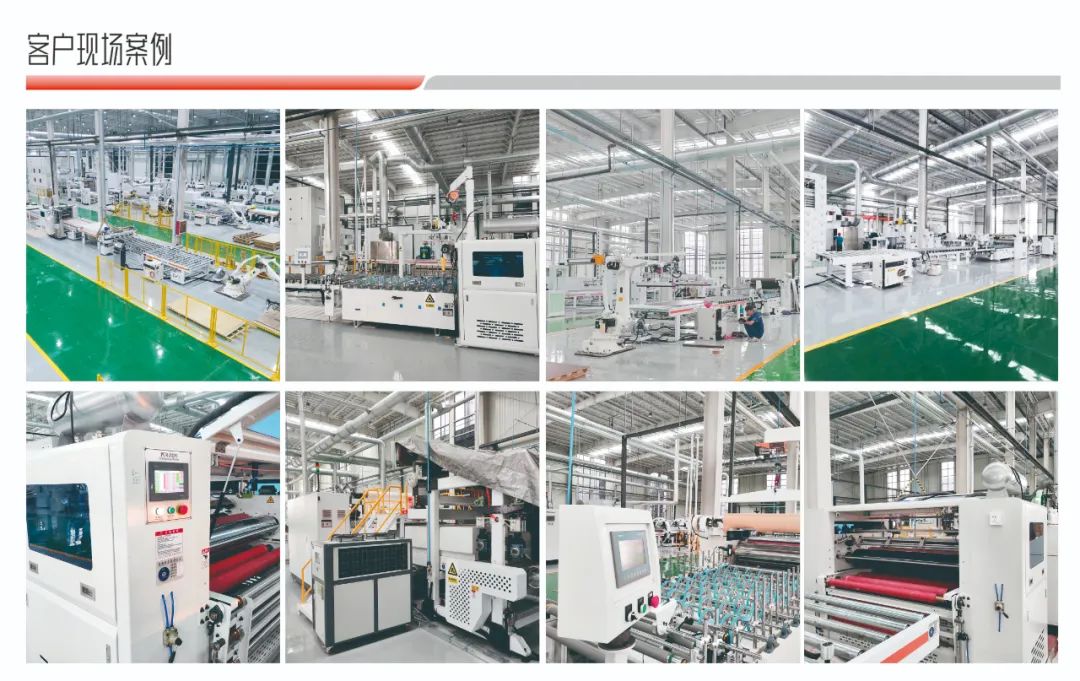 可片材、可卷材混合生產(chǎn)。通用PET、PETG、PP、PVC、CPL、防火板、亞克力、鋁箔、SPC等飾面材,利用PUR膠水均勻平貼或包覆到板材表面。 通用于包覆種類的產(chǎn)品,比如:硅酸板、水泥纖維板、門芯板多層墻板等材料進(jìn)行PUR膠水涂布后包覆各種柔性貼材。