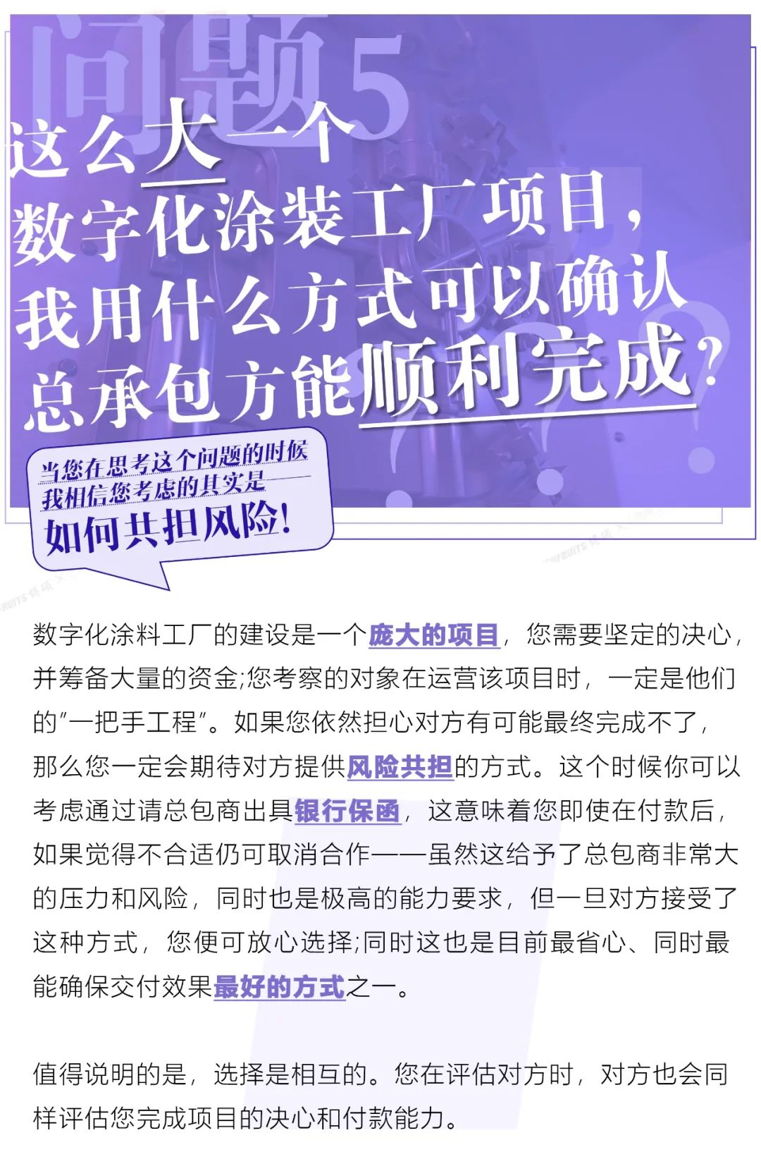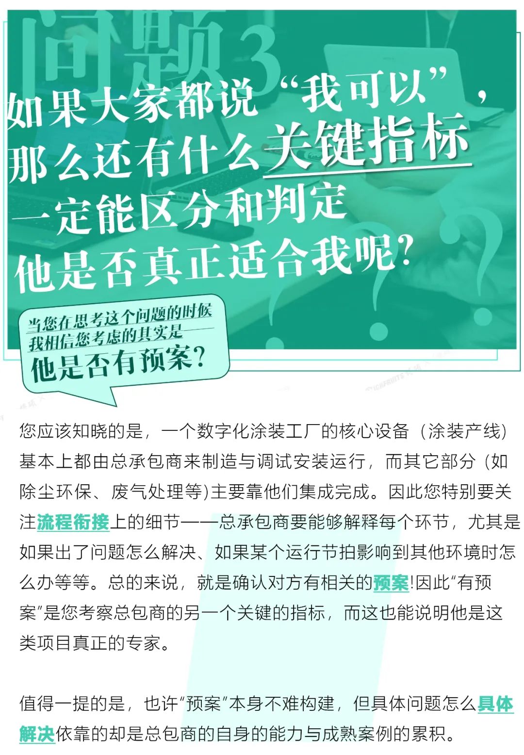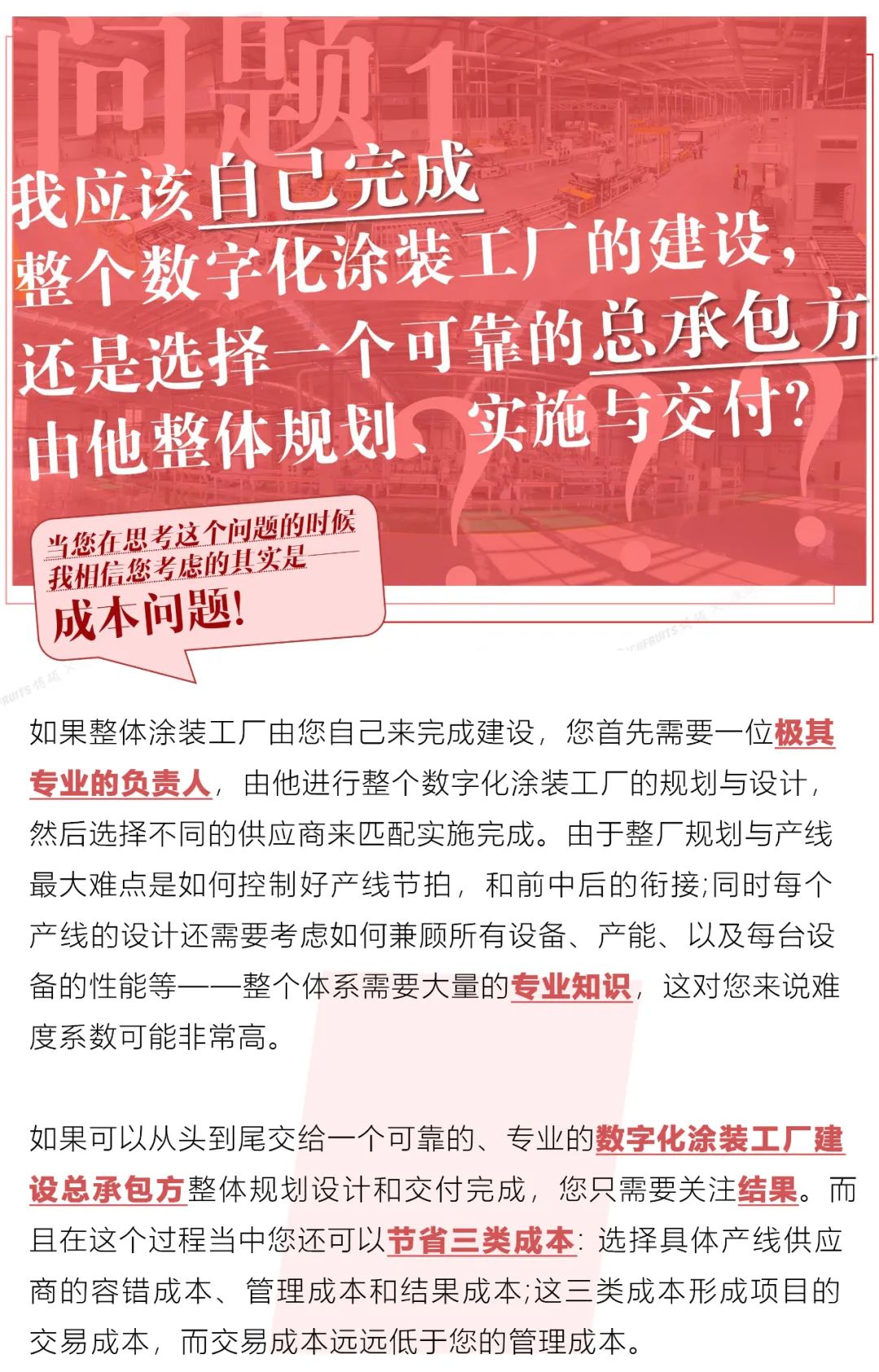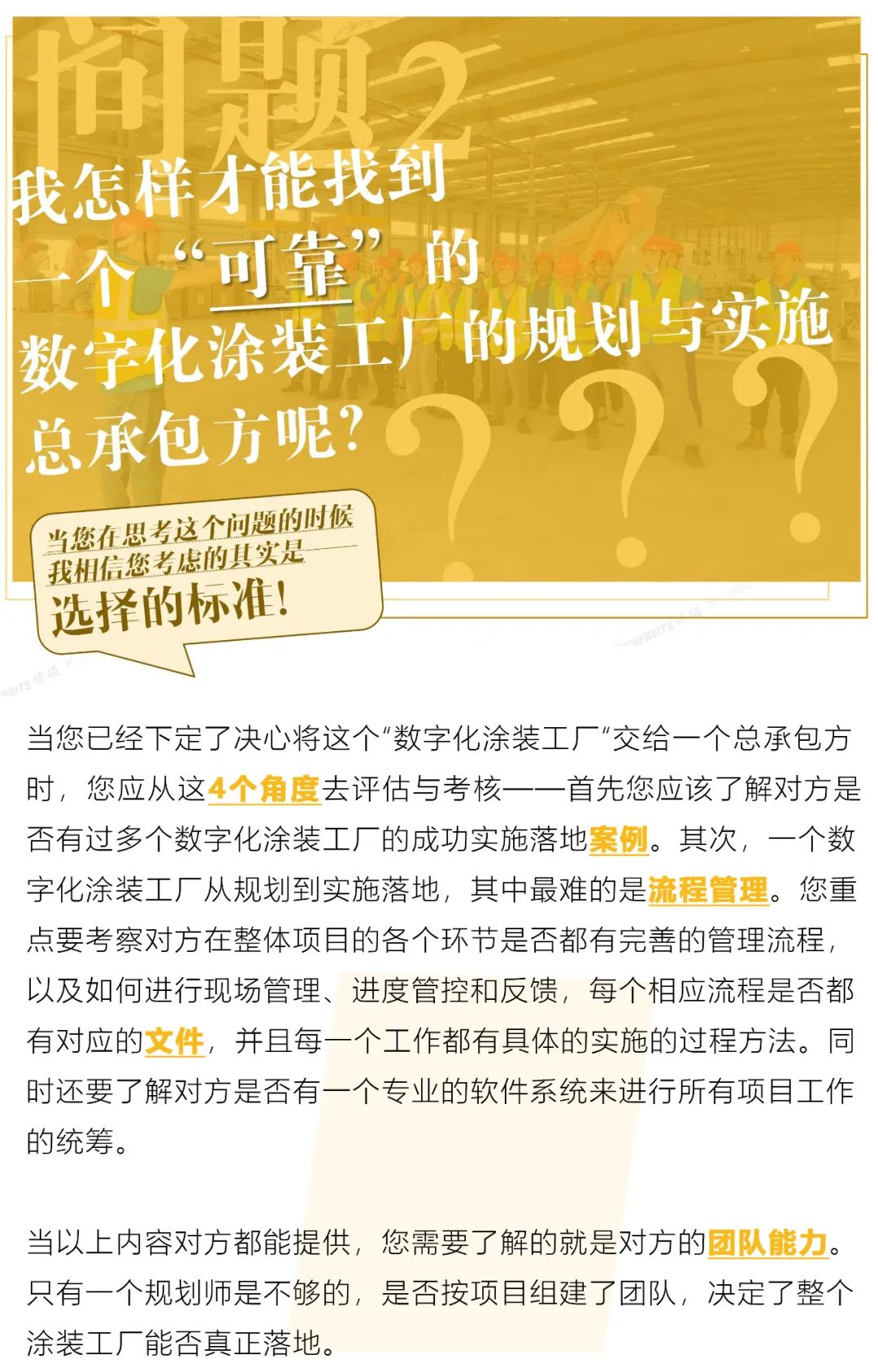 基于多元化材料,以及涂裝工藝本身的專業(yè)性,一個投資有效的數(shù)字化涂裝工廠和羅馬城一樣,并不容易建,更不是朝夕之間就能建立起來的。那么,有這樣需求的您在考慮上述的需求與解決方式的時候,您一定要從以下5件事先去思考和判斷。