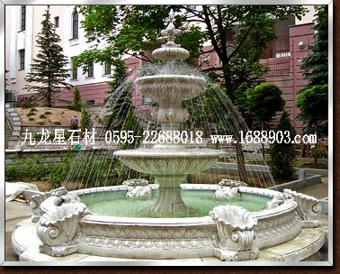別墅大理石水琺高約約2.2,三層缽盤結(jié)構(gòu)。羅馬式浮雕紋理。輔6只石雕噴水蝸牛為點(diǎn)綴。