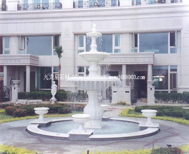 此漢白玉水缽凈高約2.8米,三層水缽結(jié)構(gòu)。配置四座漢白玉花缽做點綴。