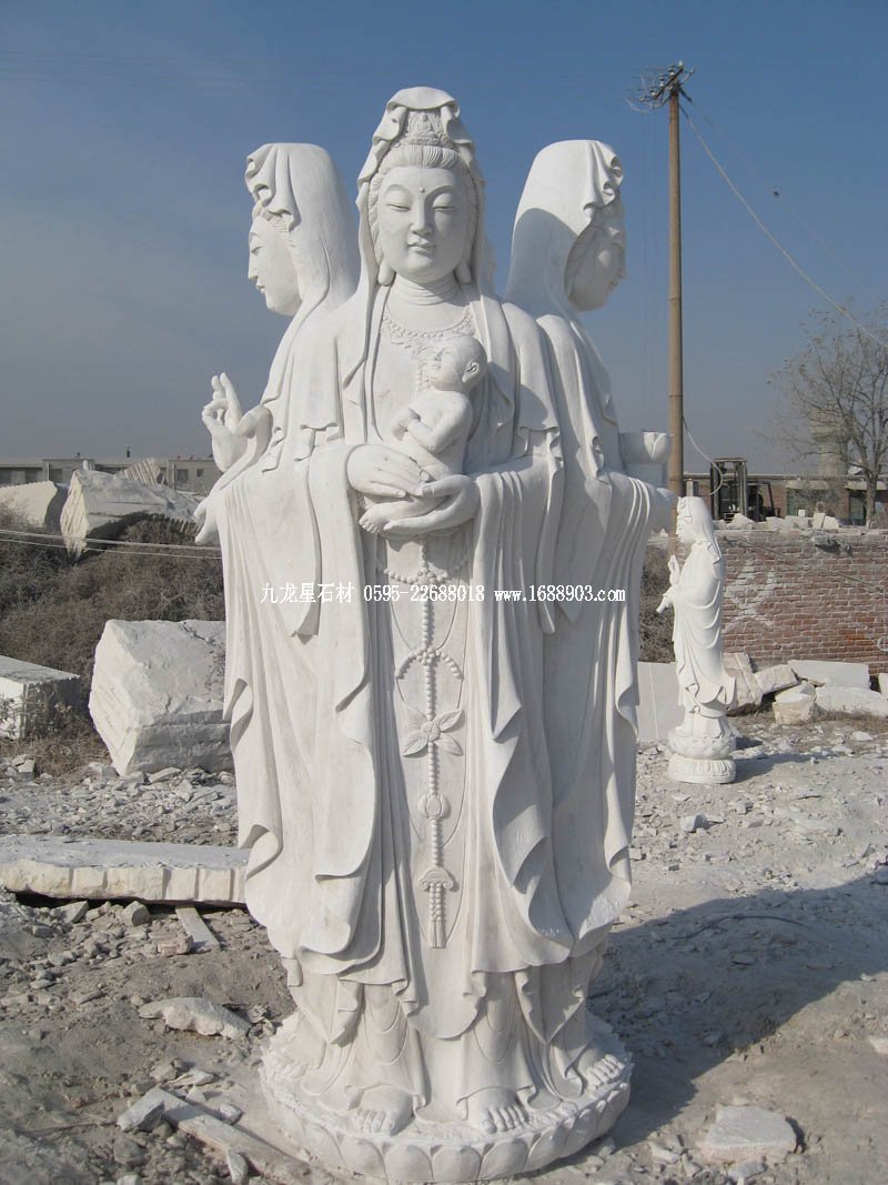 石雕四面觀音含蓮花踏板高2.8米,材質(zhì)為四川漢白玉。東面石雕觀音圣像手把水瓶,象征福音,為福報觀音;西面石雕觀音圣像手持佛珠,象征慈悲,為慈悲觀音;南面石雕觀音圣像手握蓮花,象征和平,為和平觀音;北面 ...