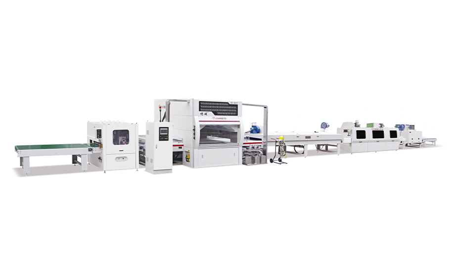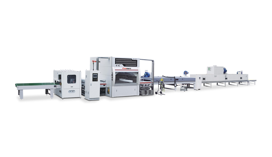 配置兩臺噴漆機和一臺自動翻面機,雙面一次完成噴涂,可以噴涂PU漆、NC漆和水性漆,是自動化程度高、產(chǎn)量大、應(yīng)用穩(wěn)定的設(shè)備。